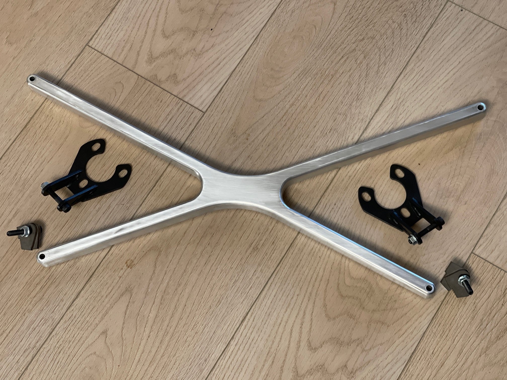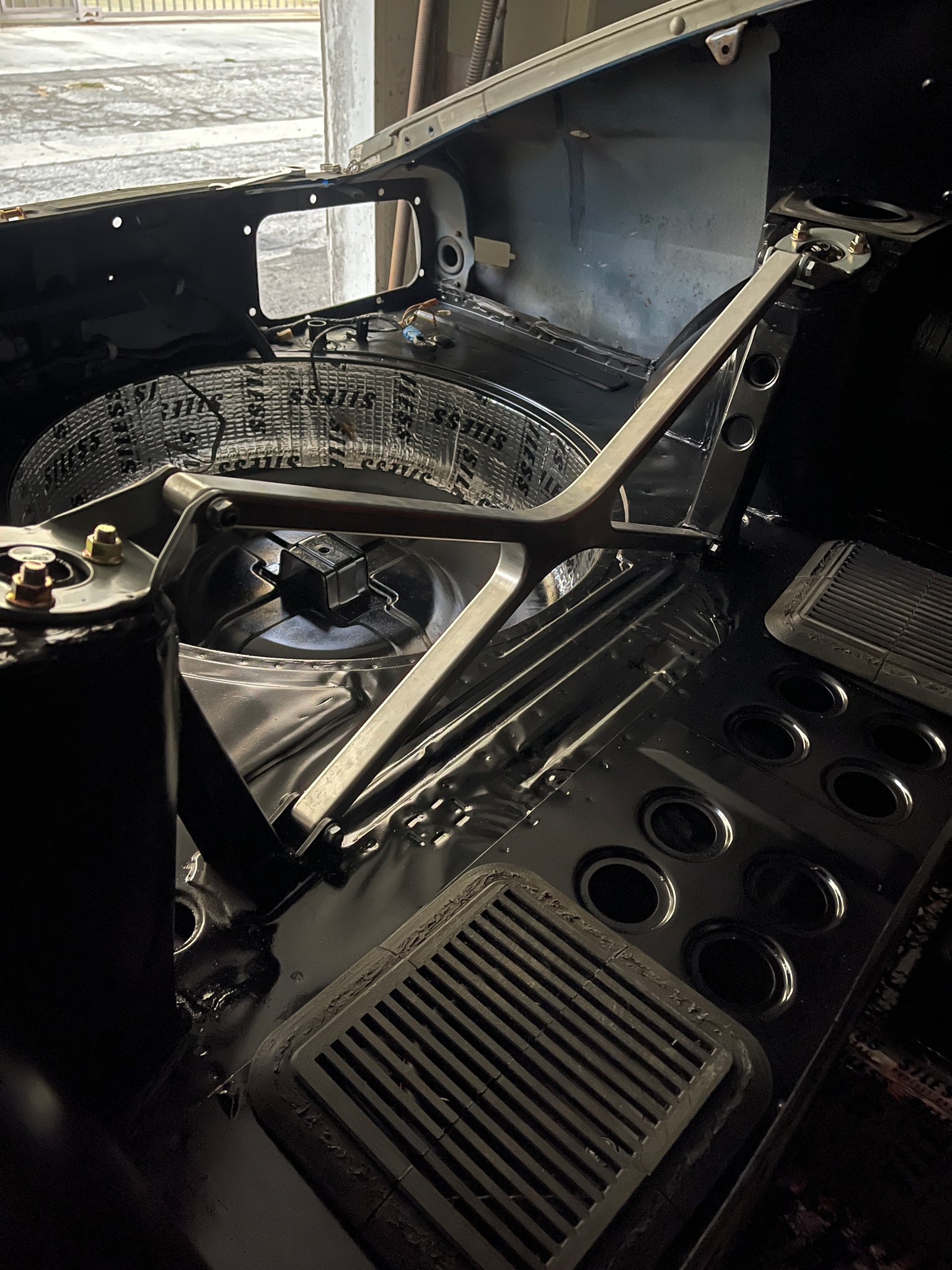 Installation: Direct bolt-on to the factory strut tower mounting points with weld-in lower brackets. For best results, install the upper braces first, then trim and weld the lower brackets to achieve precise fitment.